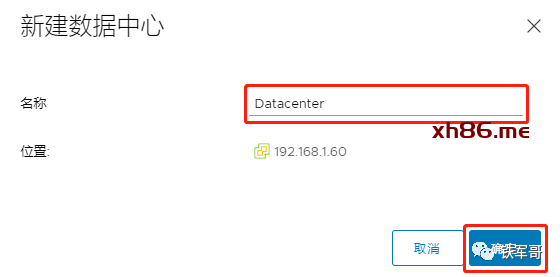 按需配置数据中心的名称,点击“确定”。