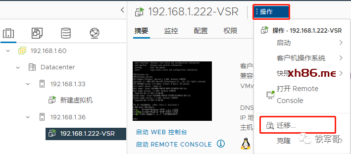 接下来,我们测试把192.168.1.36下面的这台VSR虚拟机热迁移到192.168.1.33下面。