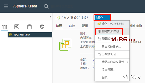 点击“操作”→“新建数据中心”。