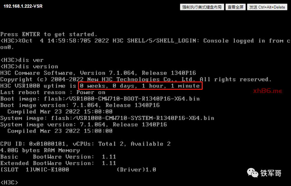 可以看到,虚拟机的运行时间为1小时1分钟,运行正常,完全没有受到迁移的影响,热迁移成功!