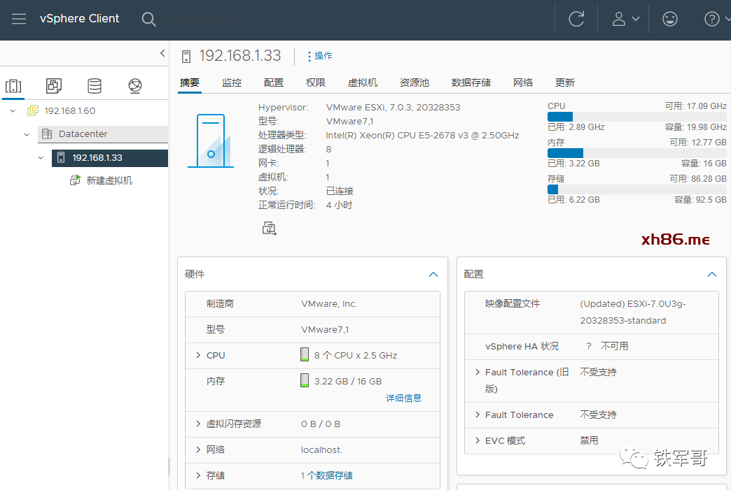 现在我们已经部署好了vCenter 7.0(VMware vCenter Server 7.0快速部署操作指南)和几台ESXi 7.0的虚拟主机(VMWare ESXi 7.0快速部署操作指南),我们可以继续测试之前操作失败的热迁移了(如何操作VMware ESXi虚拟机的迁移?)。