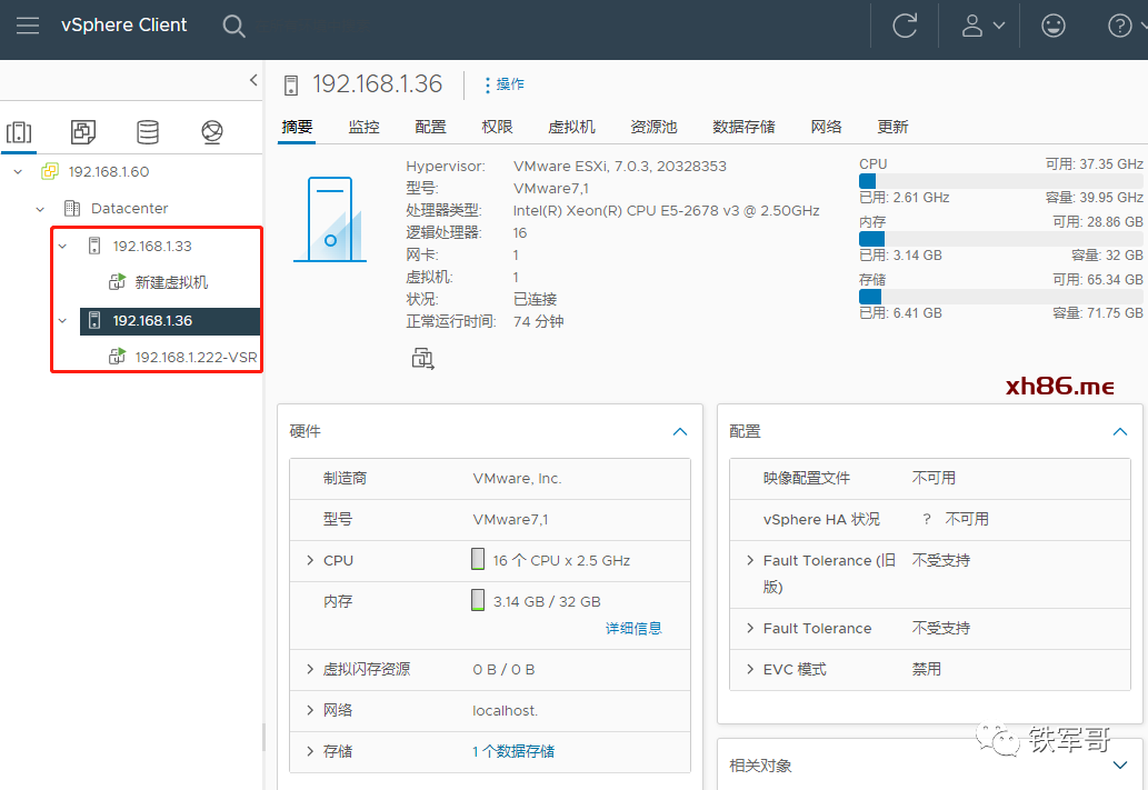 照此方式,我们再添加另外一台ESXi主机192.168.1.36。
