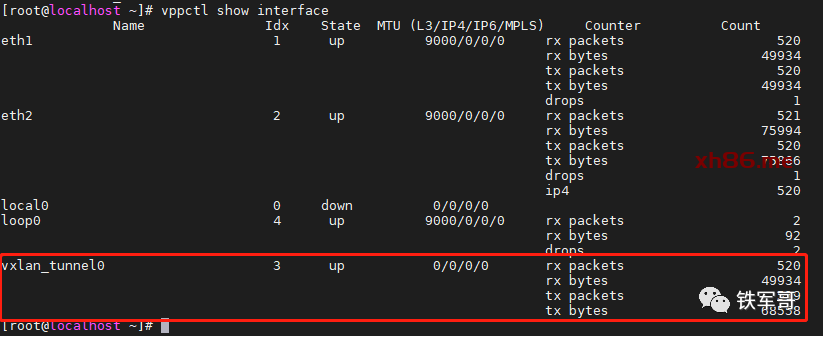 VPP中的VTEP(VXLAN Tunnel End Points,VXLAN隧道端点)设备就是VPP,VTEP是在创建VXLAN隧道时指定的,每个VXLAN隧道的源IP地址和目标IP地址就是本地服务器VTEP地址和目标服务器VTEP地址。