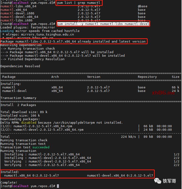 还要再装一个NUMA (Non Uniform Memory Access)的库,可以直接使用命令yum install -y numactl numactl-libs numactl-devel进行安装。