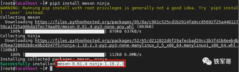 可以看到,直接安装了0.61.4版本的meson和1.10.2.3版本的ninja,满足要求了。