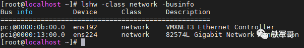 我们可以通过命令lshw -class network -businfo来查看主机的接口信息。