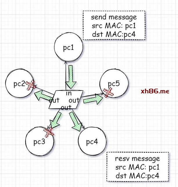 每台主机发送数据前需要携带自己和对方的目的MAC地址,因为hub集线器只是将所有数据从其他接口发送出去,它将数据的是否接收留给了主机自己判断。
