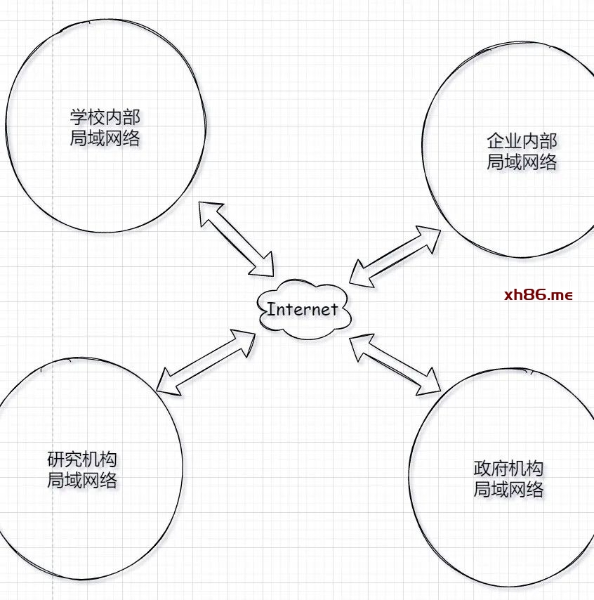 许多个类似上述的局域网组成一个大的互联网。它们彼此相连互相通信。