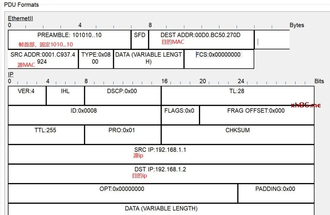 而后,帧结构再次添加IP头部信息。