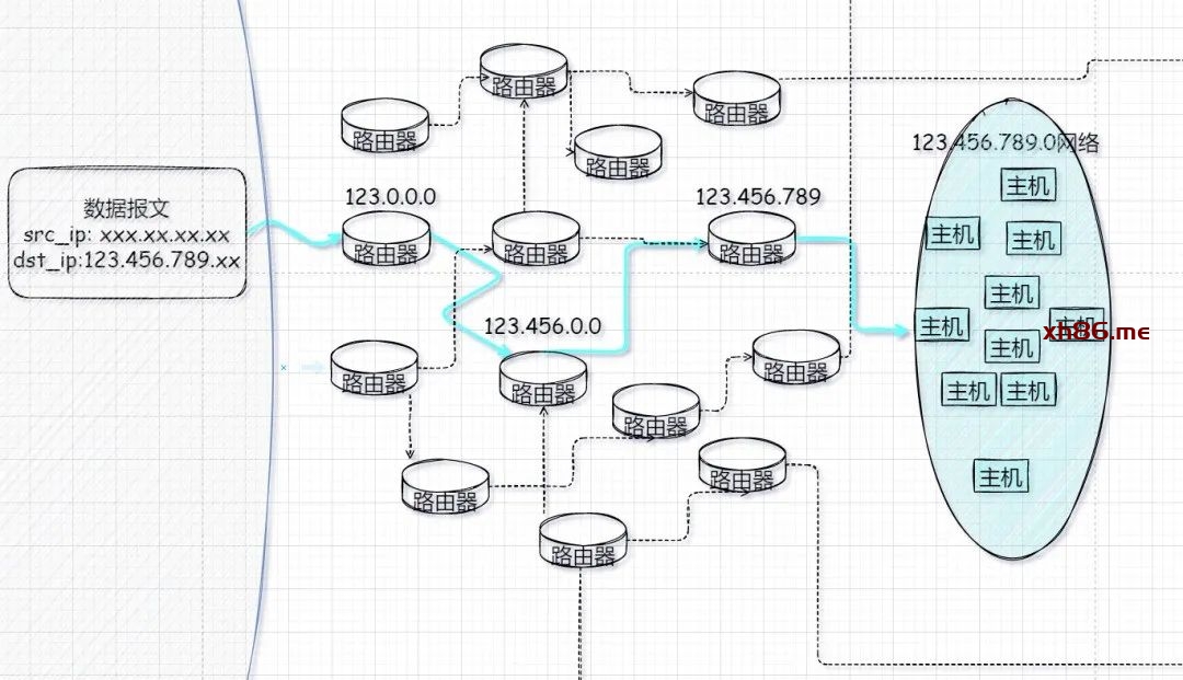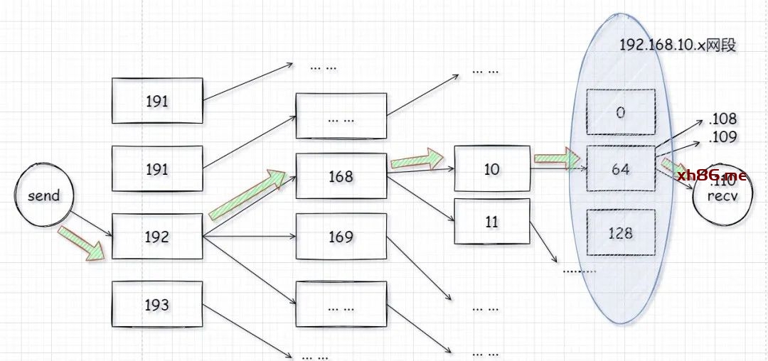 同理,ip地址也具备此功能,通过IP地址的网络位可以确定某个主机所在网络的位置,从而明确一条数据传送的路径。例如目的地址为192.168.10.110/26,则该地址所在的网络为192.168.10.64