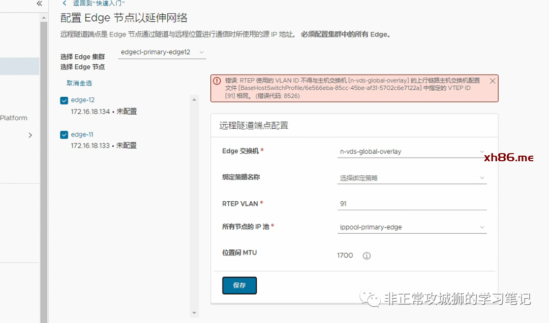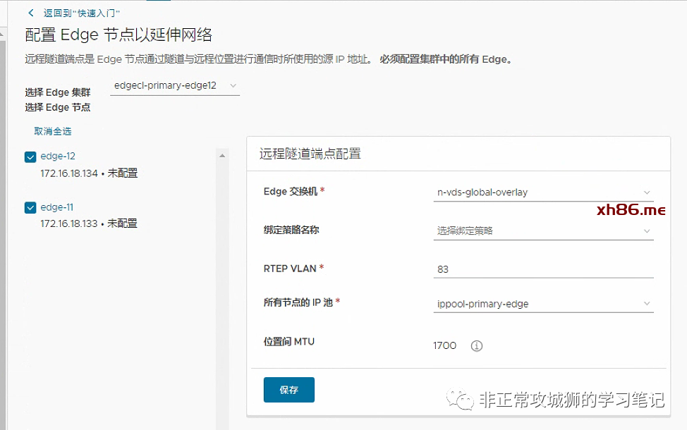 至此不难发现,对Federation架构下的Edge传输节点来说,其基本九成以上的配置步骤与MultiSite和其他单站点架构下并无差别。还记得我们在02步骤所说的Remote vTEP VLAN么?为了能够实现跨多个数据中心的Federation架构,我们需要为Edge传输节点定义Remote vTEP使用的VLAN。