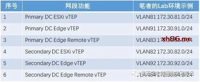 我们知道,传输节点是需要关联上行链路配置文件的。在该配置文件的诸多参数中,其中有一个叫做“传输VLAN”,对于不同数据中心的ESXi传输节点来说,只会拥有一个传输VLAN,即上表格中的VLAN81/VLAN82。但是对于Edge传输节点来说,同一台Edge传输节点可能会存在两个不同的“传输VLAN”。