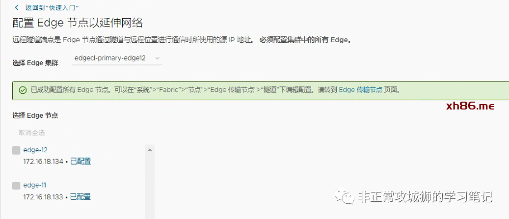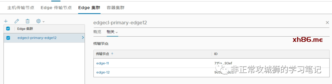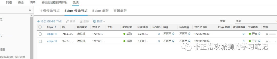 可以看到:在完成了上述配置后,Edge传输节点的状态已经变为“成功”“开启”。