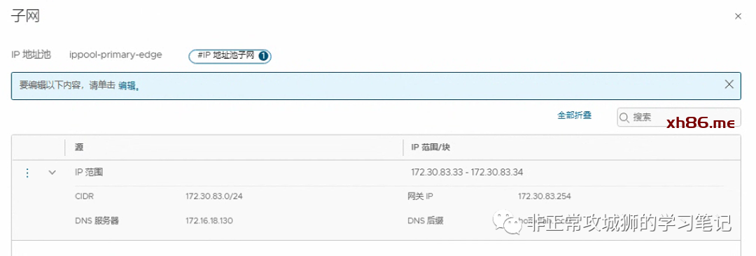 添加正确的IP地址池配置,如用83、84两个VLAN作为Remote vTEP使用。