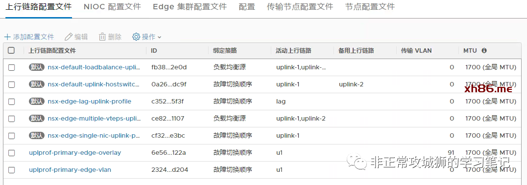注意:对于需要关联到Edge节点的上行链路配置文件来说,“传输VLAN”填写的是本地vTEP使用的VLAN。