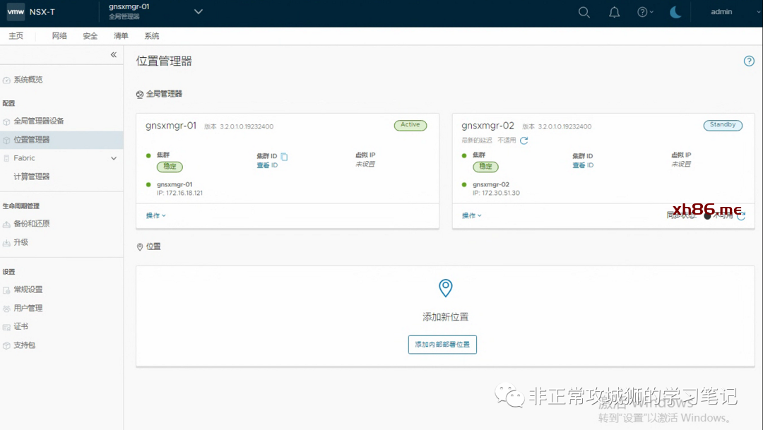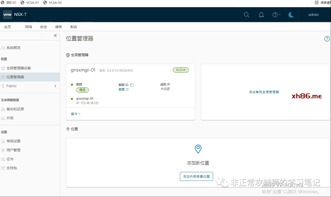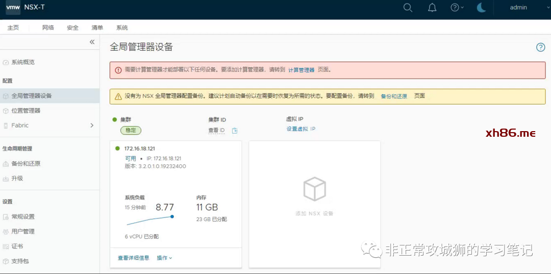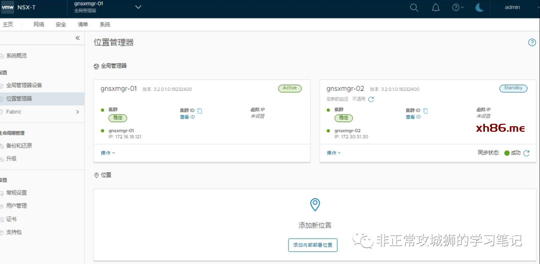 至此,Federation相关的GM与LM服务器部署就全部完成了。当然,与3台GM服务器组成集群相同,对于需要采用3节点部署的LM服务器集群来说,管理员同样需要添加vCenter作为计算管理器,来对NSX-T部署其他节点提供充足的硬件资源。