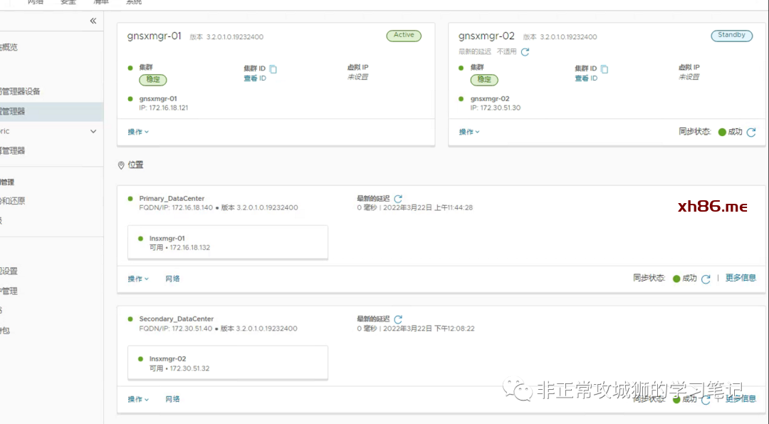 对于3台NSX-T LM服务器组成的集群来说,站点管控平面的高可用性依赖于本身的3节点冗余以及vSphere HA、虚拟机-宿主机关联规则等带来的补充。其可恢复性同样依赖于日常备份与还原。A站点的LM不会和其他站点的LM进行交互。对于只负责自身站点的管理员来说,也不需要拥有GM的超级管理员权限,日常访问LM也能实现基本的维护与操作了。