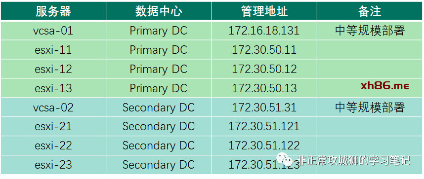 🐈对于vSphere环境来说,包含2台vCenter服务器和6台ESXi服务器。建议vCenter采用中等以上规模部署,且管理网络应该L3划分,以完全模拟数据中心实际的网络情况。