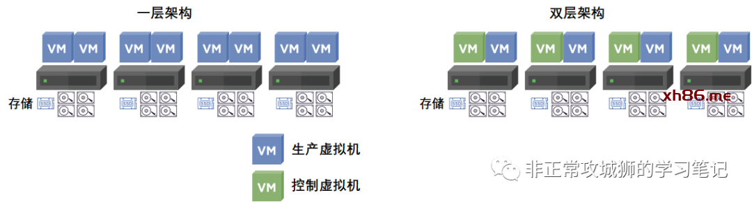 这就意味着,群集可以提供真正业务使用的“内存资源池”比传统架构的要有所减少。而且服务器配备的内存越少,造成的影响越大。(如果每台服务器是256GB内存,那么CVM就要占据几乎1/3的内存消耗)。这其实很容易理解嘛: