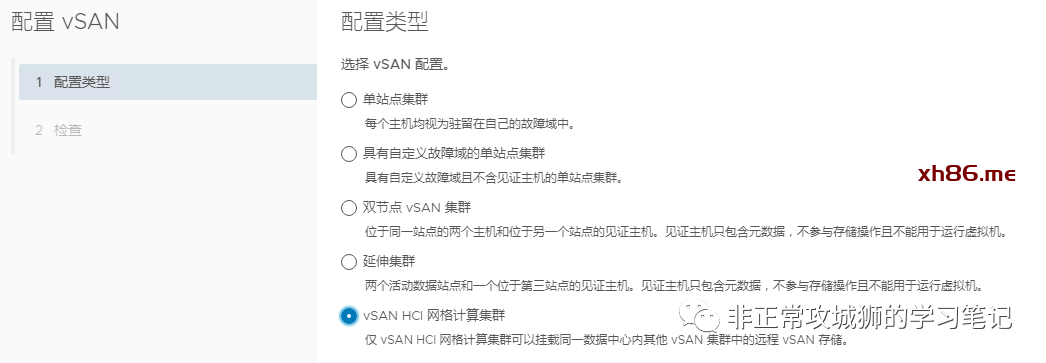 A>激活该群集的vSAN服务,选择配置‘“vSAN HCI网络计算集群”。