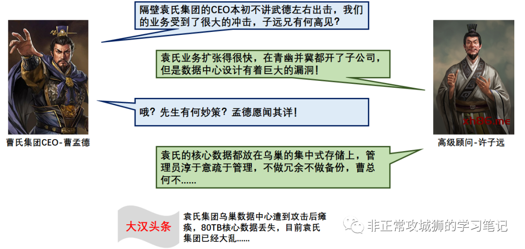 回到各位熟悉的IT世界,过去的种种“救场”经历告诉笔者,许多用户出现“业务停摆”是由于为业务提供支撑的后端集中式存储出现了故障导致的。客观地来说,企业数据中心在计算和网络层面的高可用性已经相当成熟。但就“储的高可用”来说,因为成本等因素的制约,往往成了数据中心这个木桶的“短板”。就好像是将所有粮食囤积在乌巢的袁绍那样,如果业务的“粮草大营存储”因为主客观的原因出现了故障并且缺少有效的恢复方案时,那对业务造成的影响是绝对致命的。