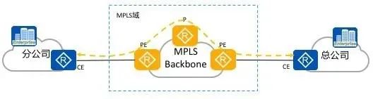 MPLS VPN网络一般由运营商搭建,VPN用户购买VPN服务来实现用户网络之间(图中的分公司和总公司)的路由传递、数据互通等。