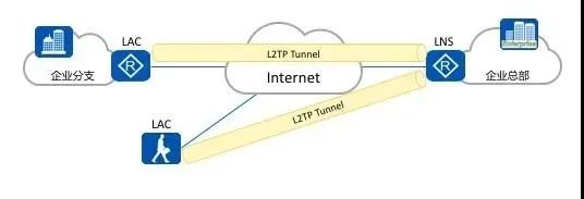 L2TP是虚拟私有拨号网VPDN(Virtual Private Dial-up Network)隧道协议的一种,它扩展了点到点协议PPP的应用,是一种在远程办公场景中为出差员工或企业分支远程访问企业内网资源提供接入服务的VPN。