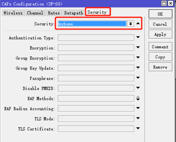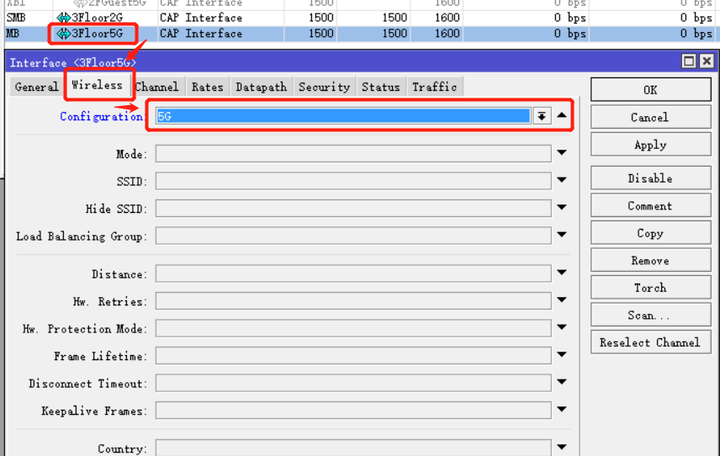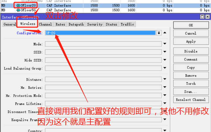 双击你所要配置的CAP接口,在wireless里面选好2-A节建立的主配置规则即可。