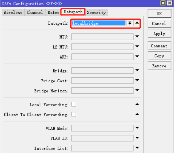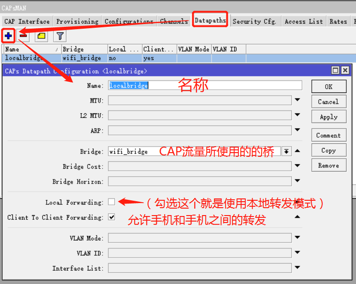 数据路径定义:主要是配置CAP是数据是如何传输(集中转发还是本地转发),使用本地转发的vlan id是多少等。