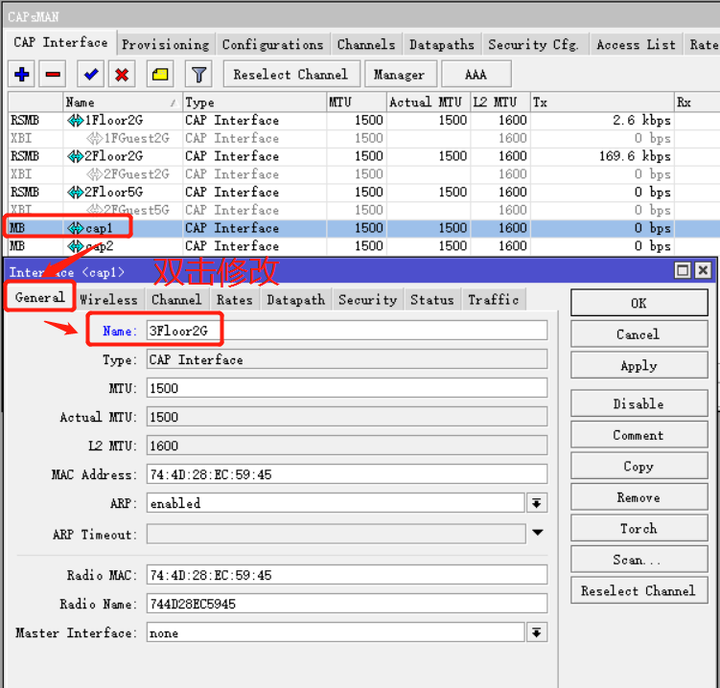 首先我们要修改下我们的CAP的无线接口名称,便于识别。