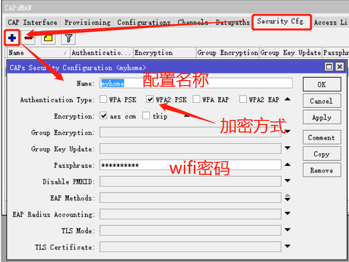 C.配置无线所使用的的密码Security cfg