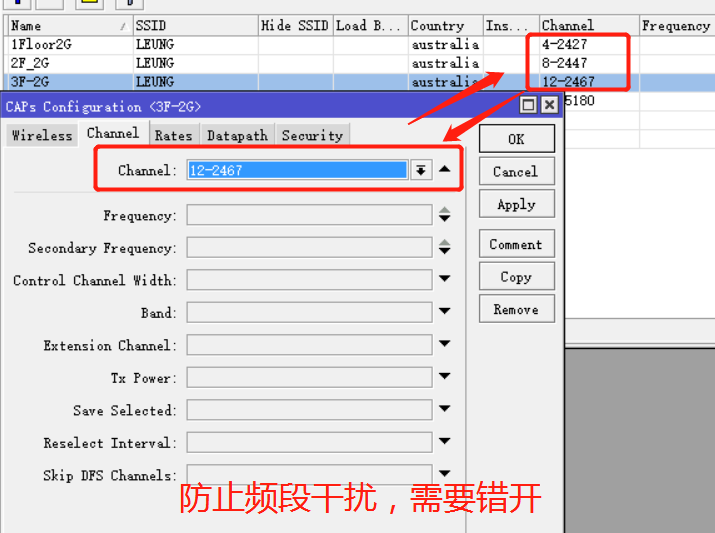 调用的channel配置,我的三个2.4G是错开的频段,避免频段干扰