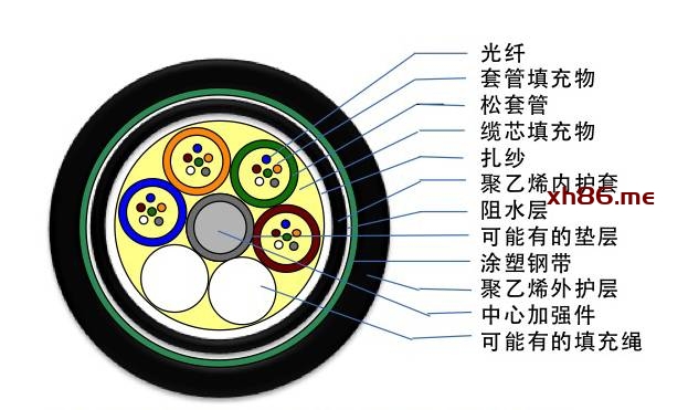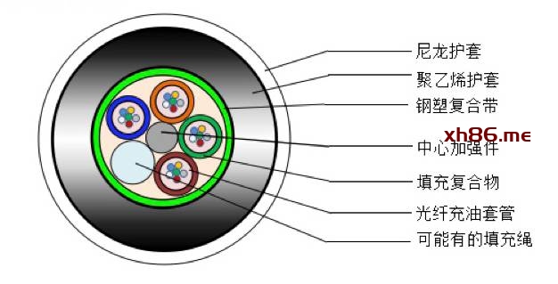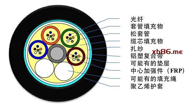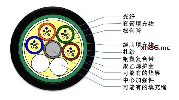 注:非金属加强件比金属加强件重量小,但抗拉伸能力不如金属加强件;用玻璃纤维做加强件,一定程度上可以防鼠;非金属加强件成本低廉