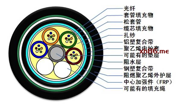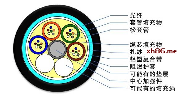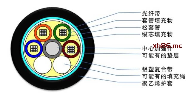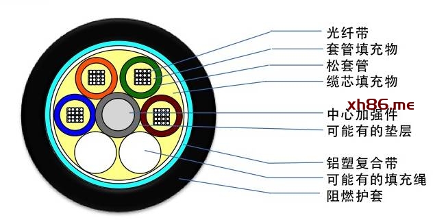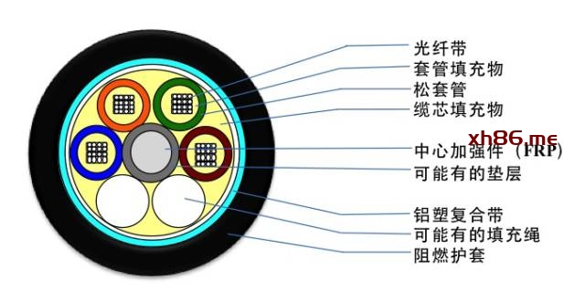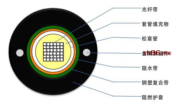 “室外用、非金属加强件、光纤带油膏填充、铝-阻燃聚乙烯外护套”