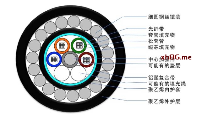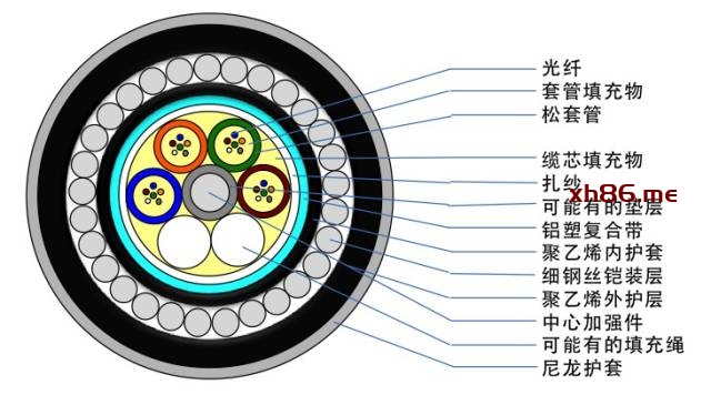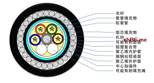 “非金属加强件、松套层绞、聚乙烯内护套芳纶铠装、聚乙烯外护套”