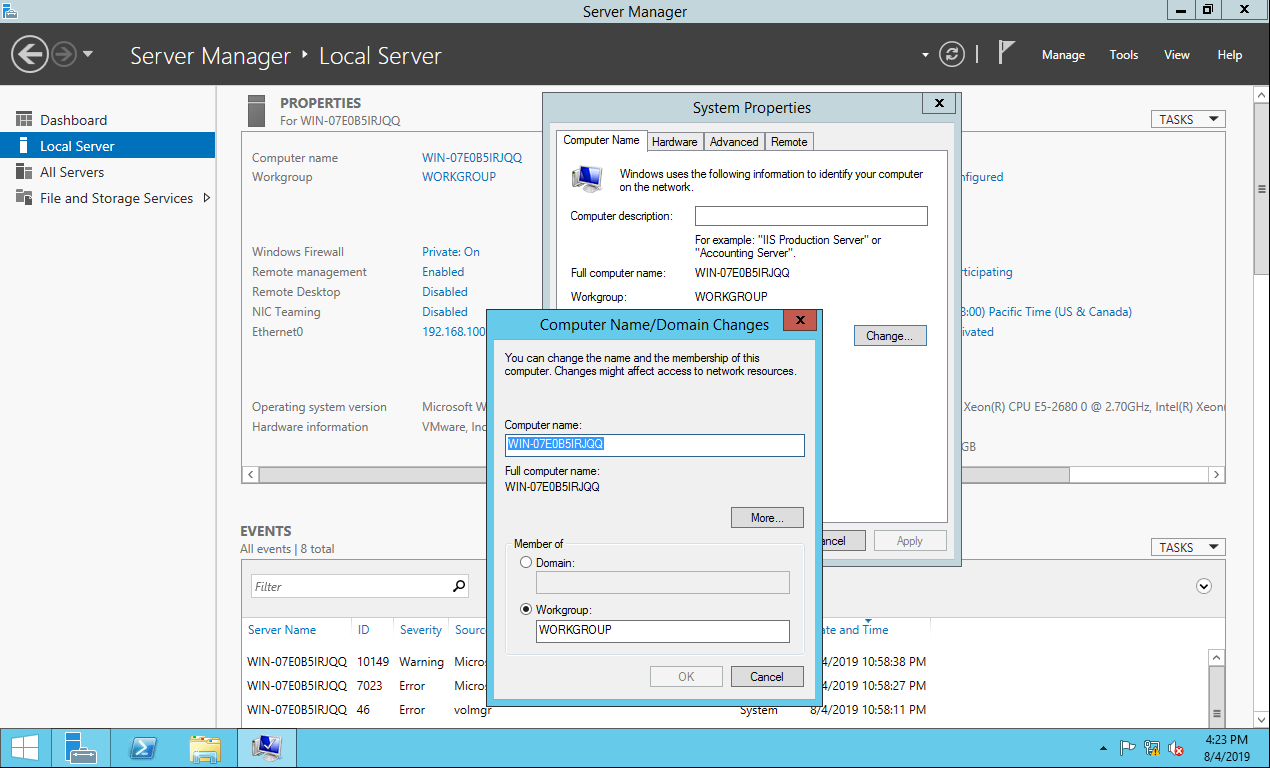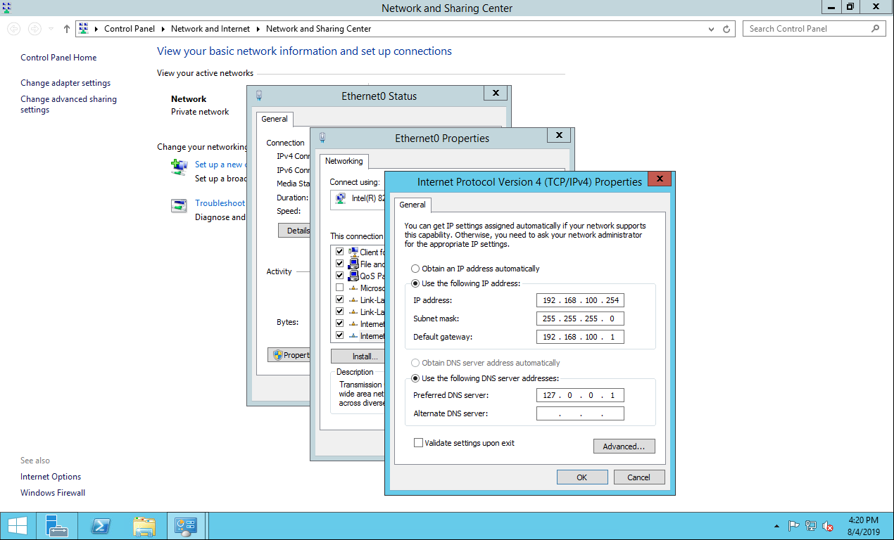 - 系统设置 – 设定静态IP,网关,DNS指向8.8.8.8, 8.8.4.4;更改计算机名称;系统重启;