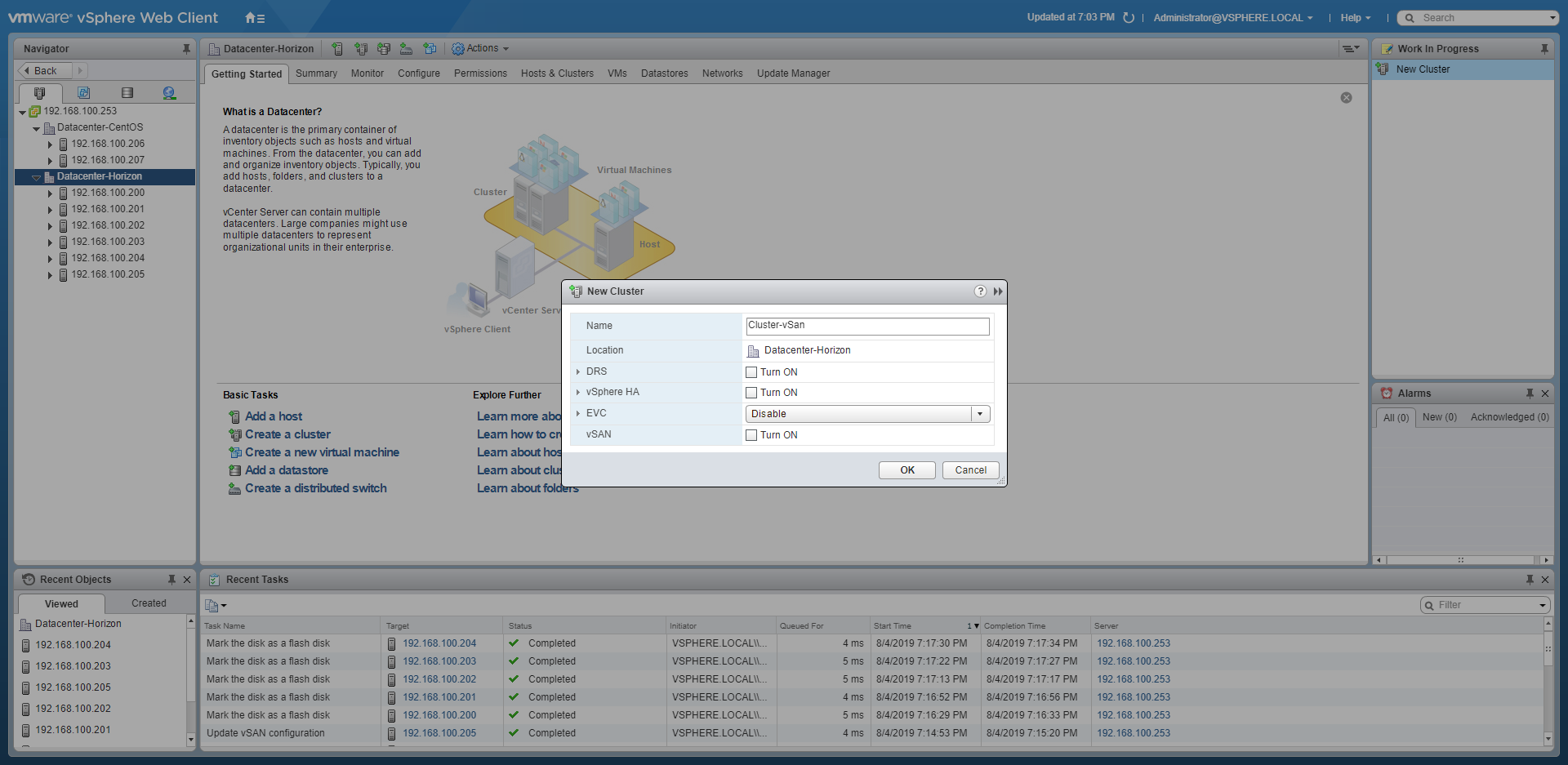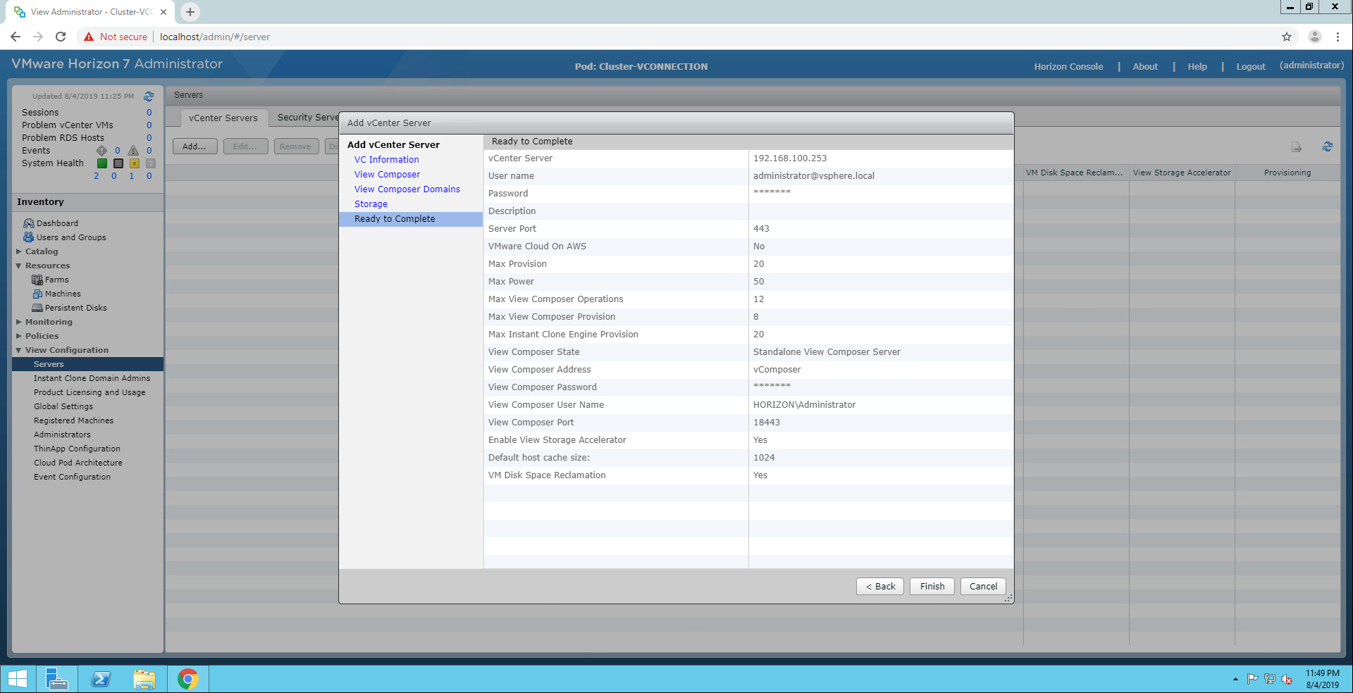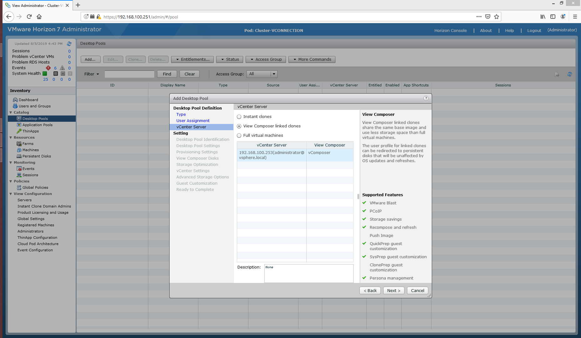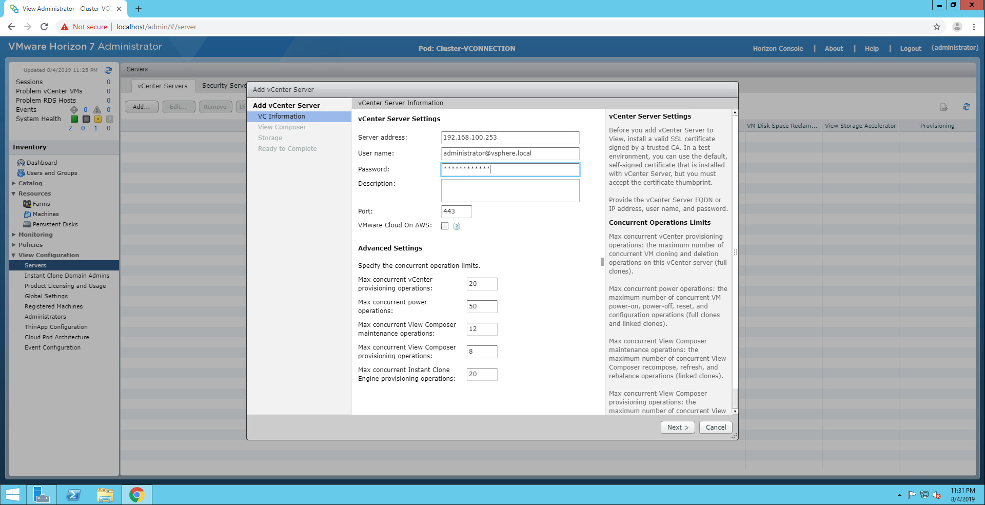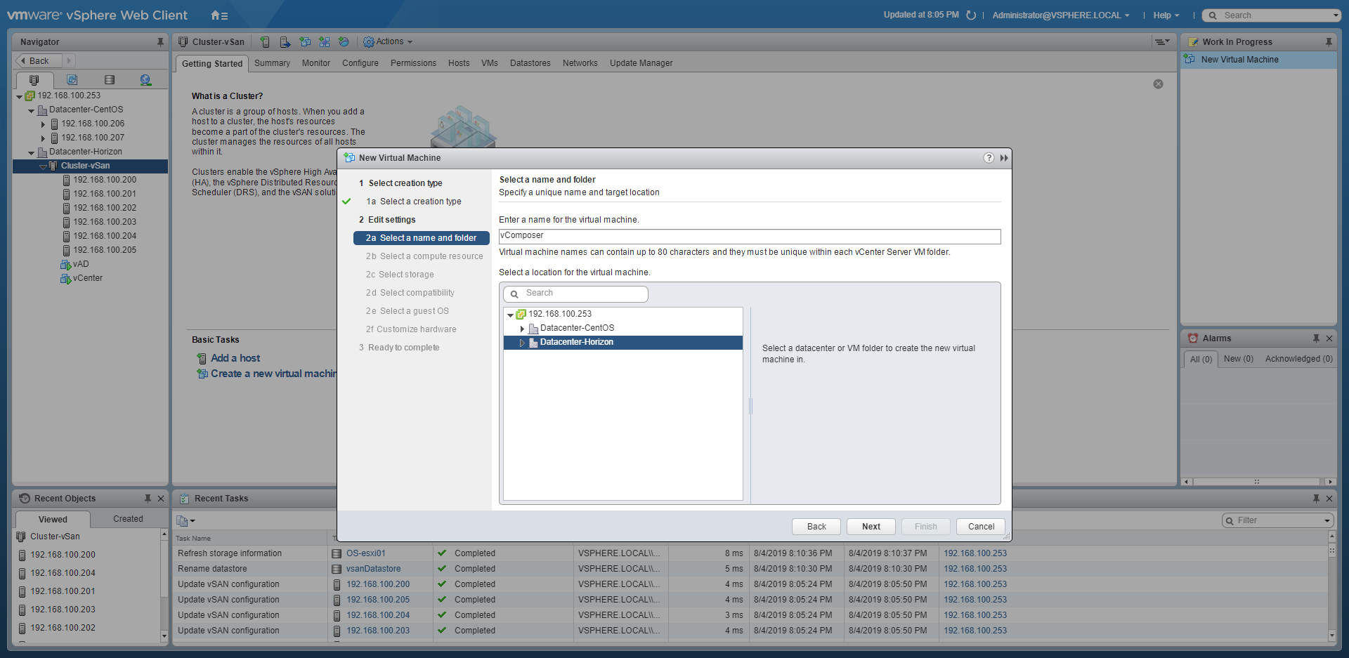 - 在集群上创建虚拟机,vComposer及vConnection(一下安装均以管理员身份运行);