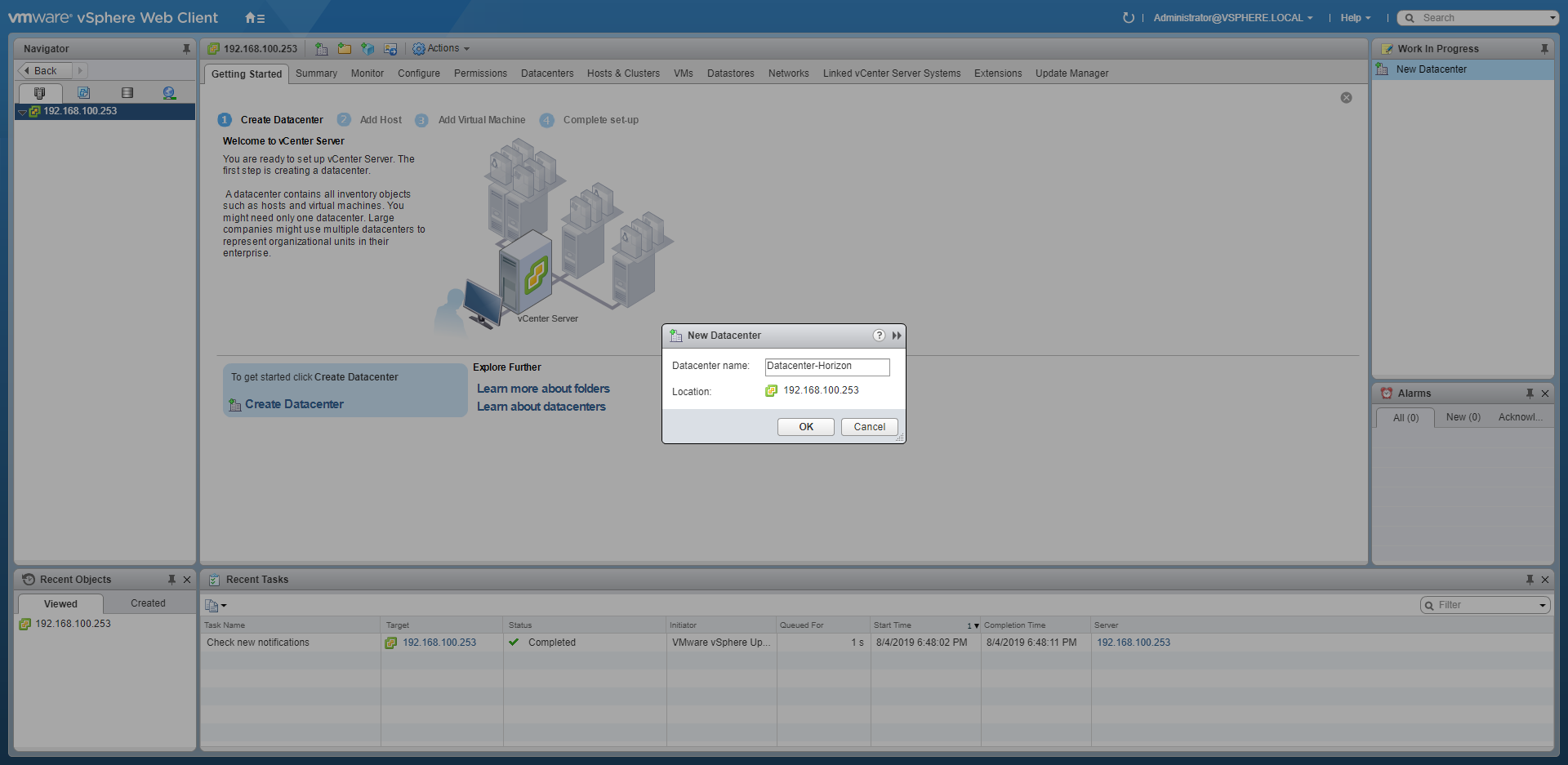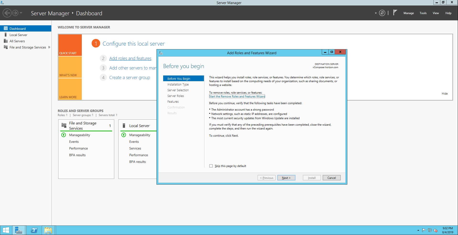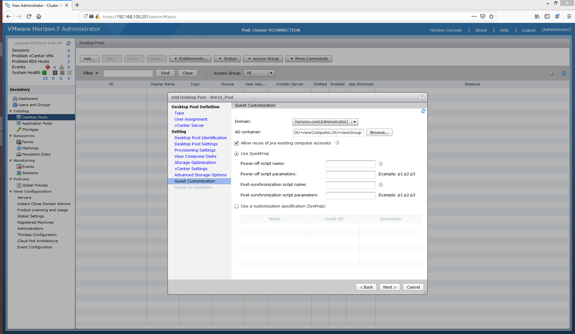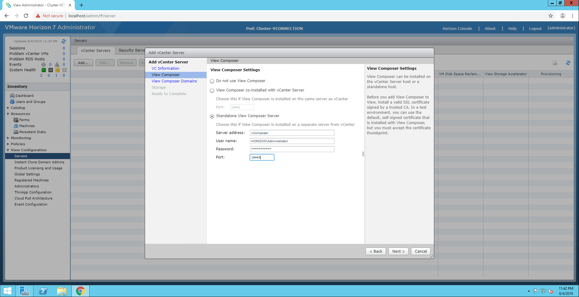 - 在集群上创建虚拟机,vComposer及vConnection(一下安装均以管理员身份运行);