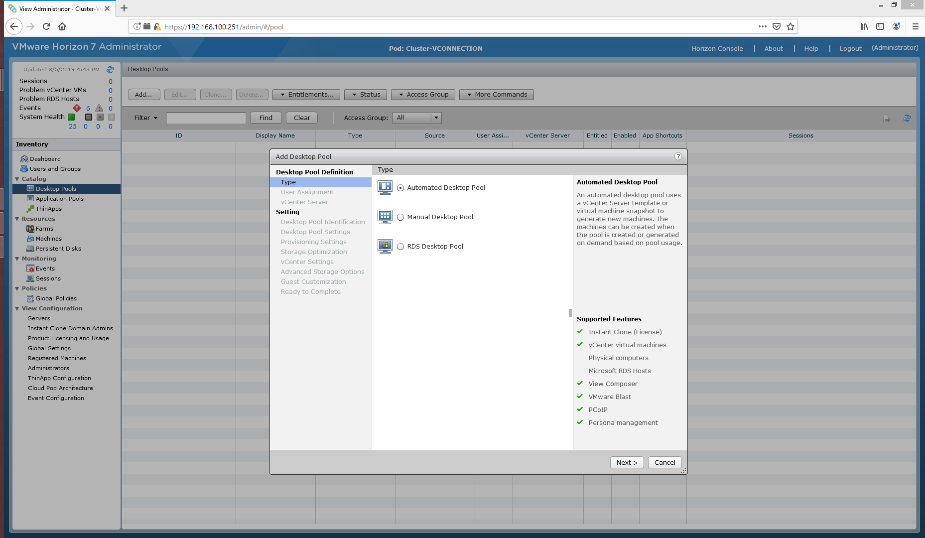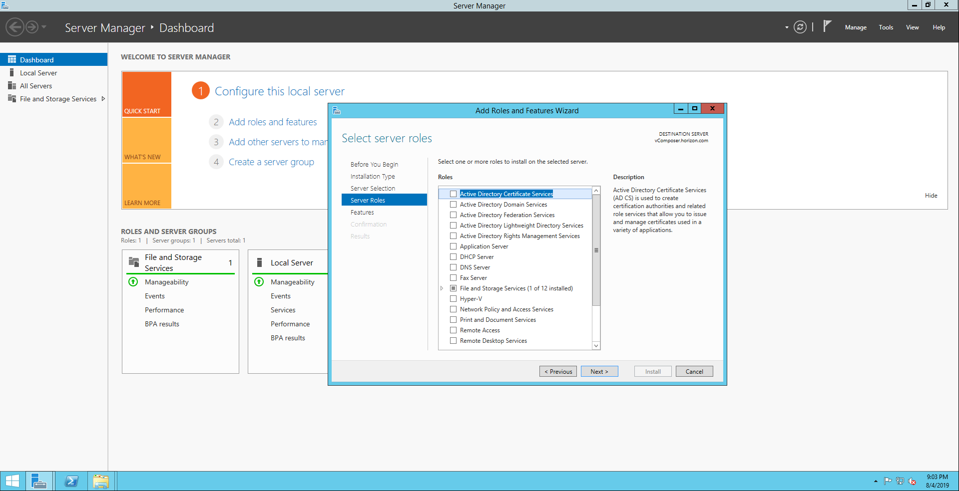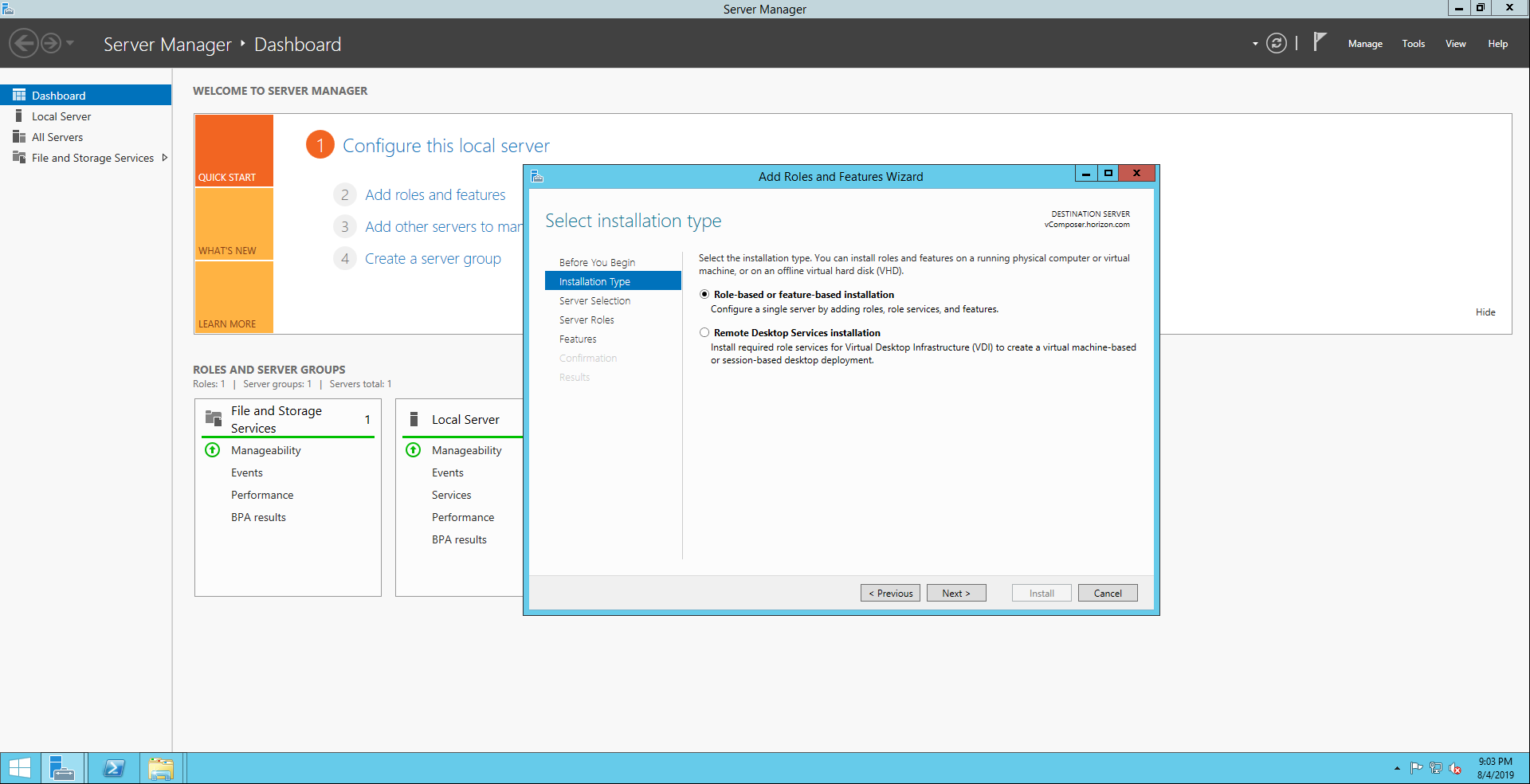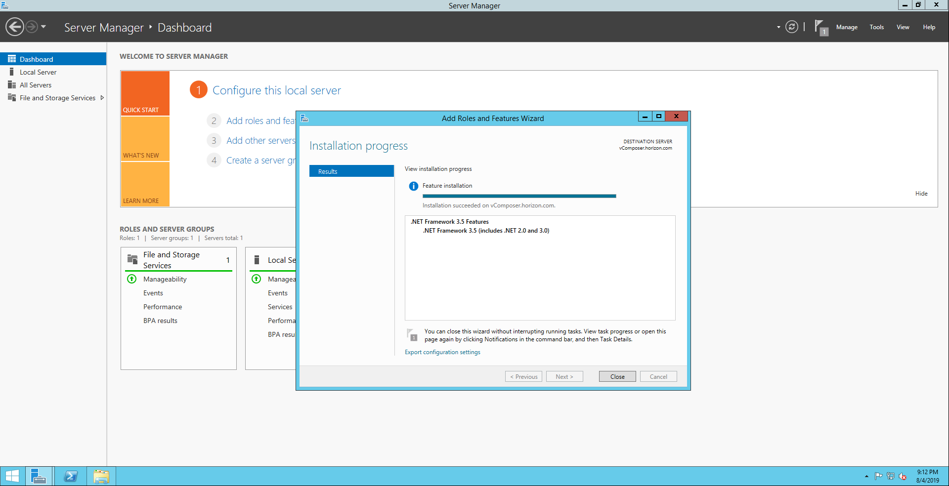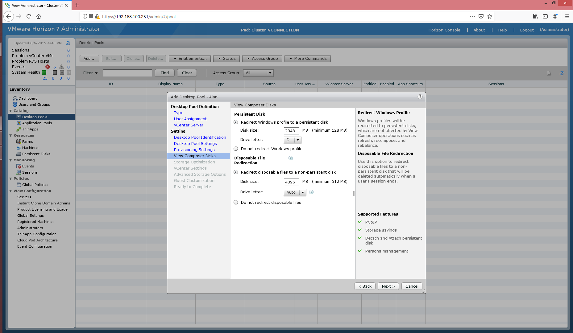 - 在集群上创建虚拟机,vComposer及vConnection(一下安装均以管理员身份运行);