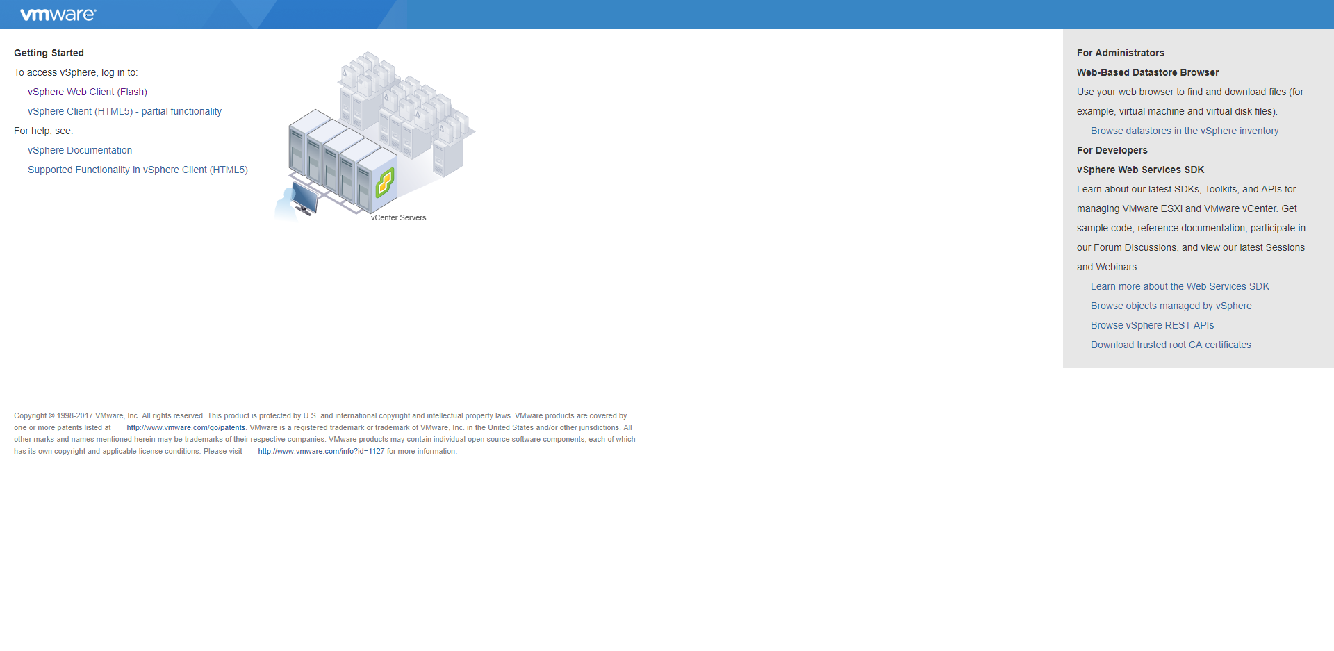 - 暂用旧版界面, 选择vSphere Web Client(Flash);