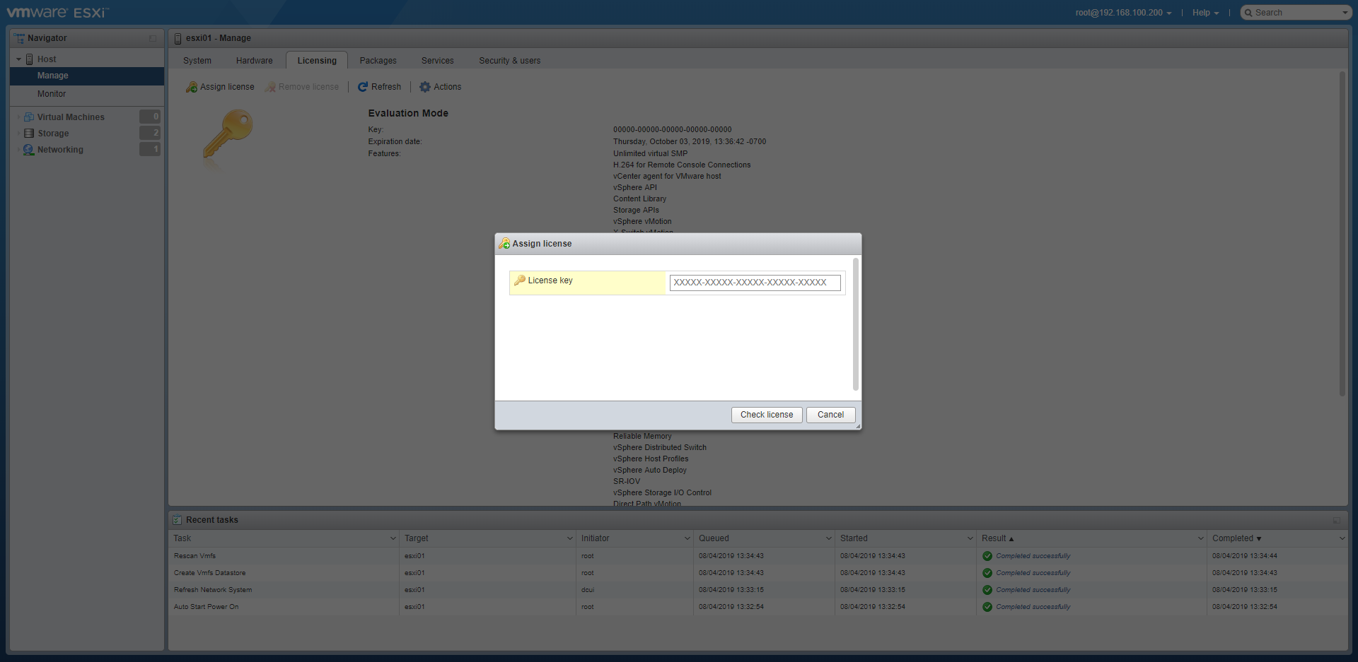 - 登录后首先用vSphere 6.0 6.5通用版注册机(单独下载)激活ESXi;