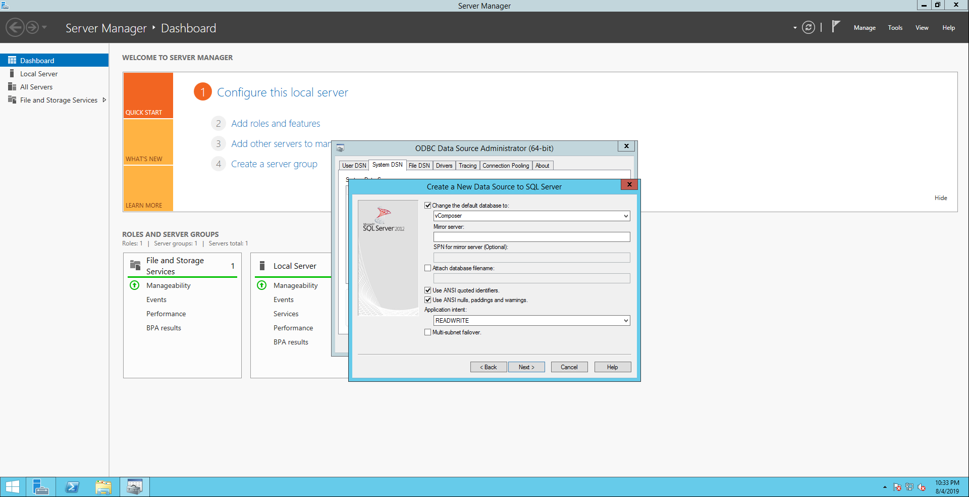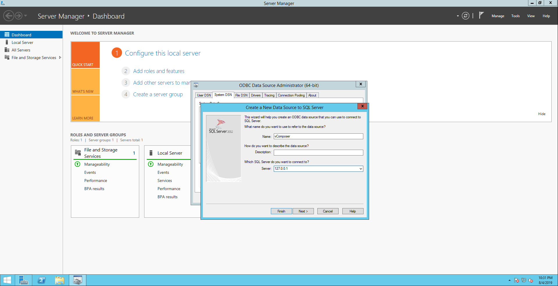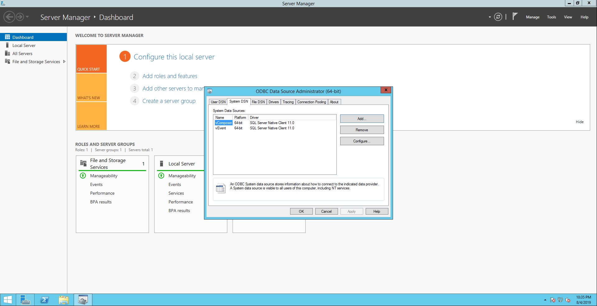 Config System DSN;相同步骤分别添加vComposer及 vEvent;