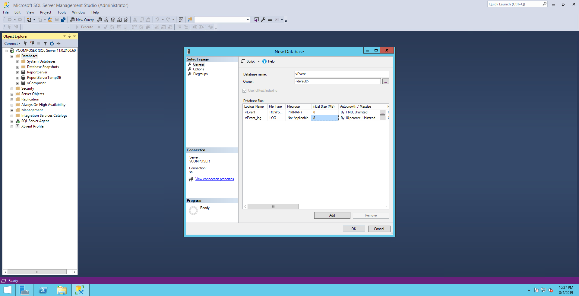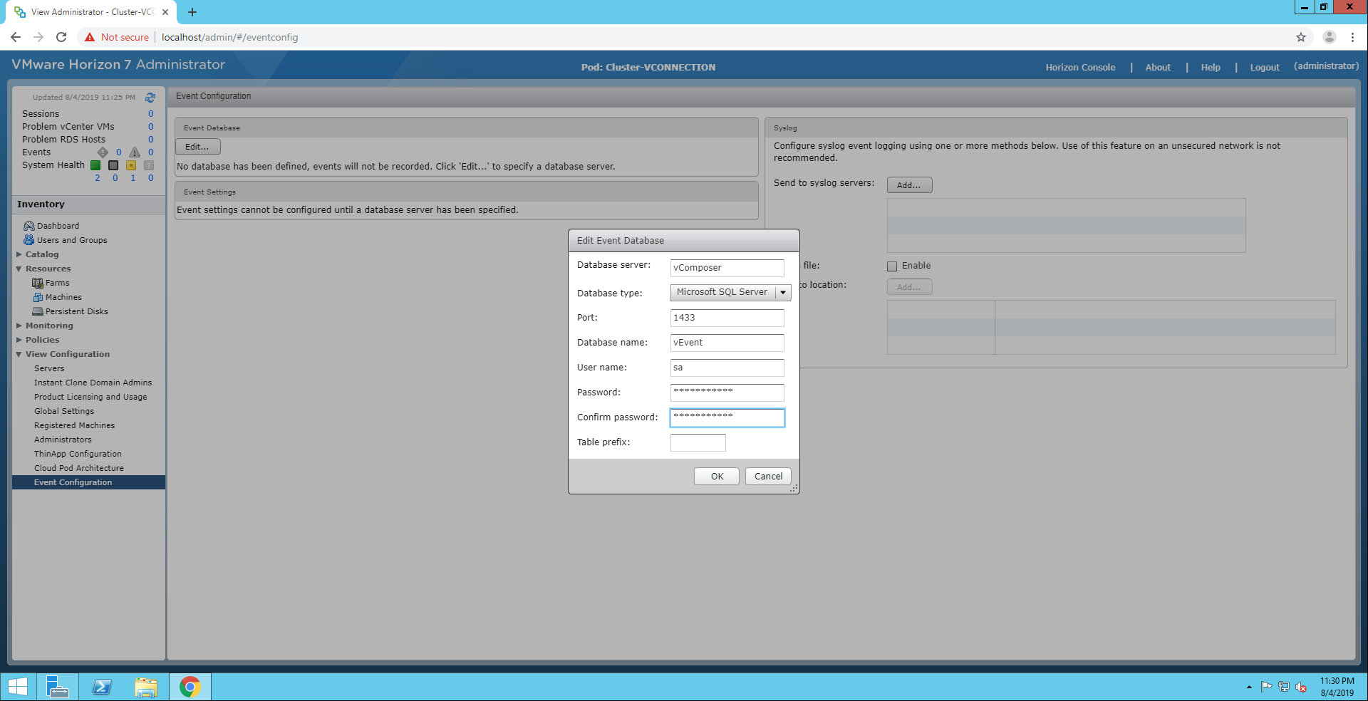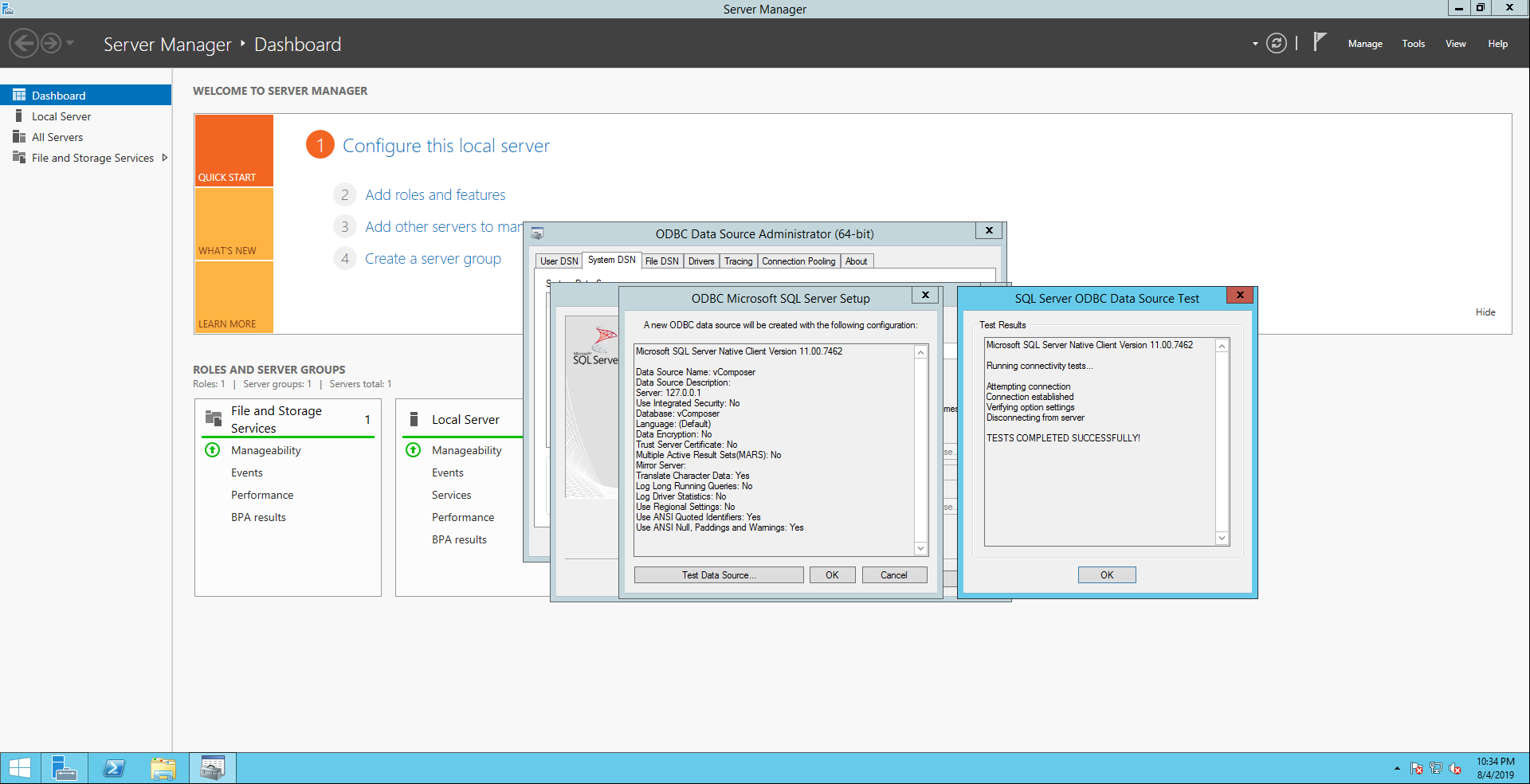 Config System DSN;相同步骤分别添加vComposer及 vEvent;
