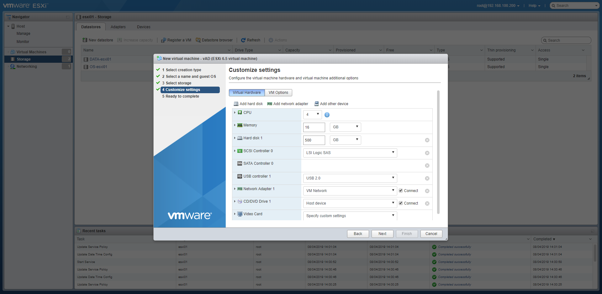- 创建虚拟机,设定虚拟机名字及安装系统,设定虚拟机参数,Review各参数,创建;