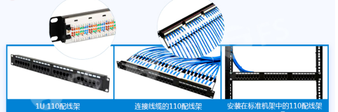 网络配线架主要是用于网络系统配线的组件,正如正面所说,110配线架通常用来连接电话。举个例子,假设一根网线进来,需要6根线充当网络线,2根线充当电话线,那么6根网络线会打到RJ-45配线架上,而2根电话线会打到110配线架上。