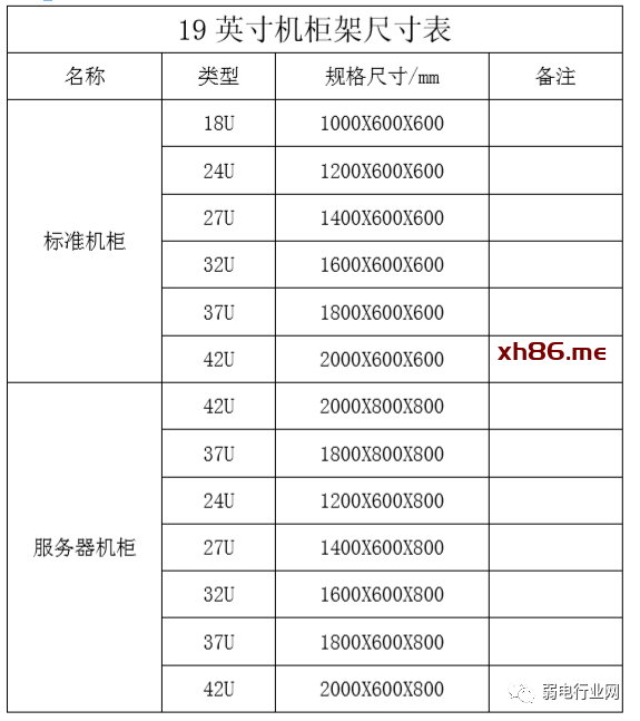 规定的尺寸是服务器的宽(48.26cm=19 英寸)与高(4.445cm 的倍数)。 由于宽为 19 英寸,所以有时也将满足这一规定的机架称为“19 英寸机架”。厚度以 4.445cm 为基本单位,1U 就是4.445cm。具体见下表: