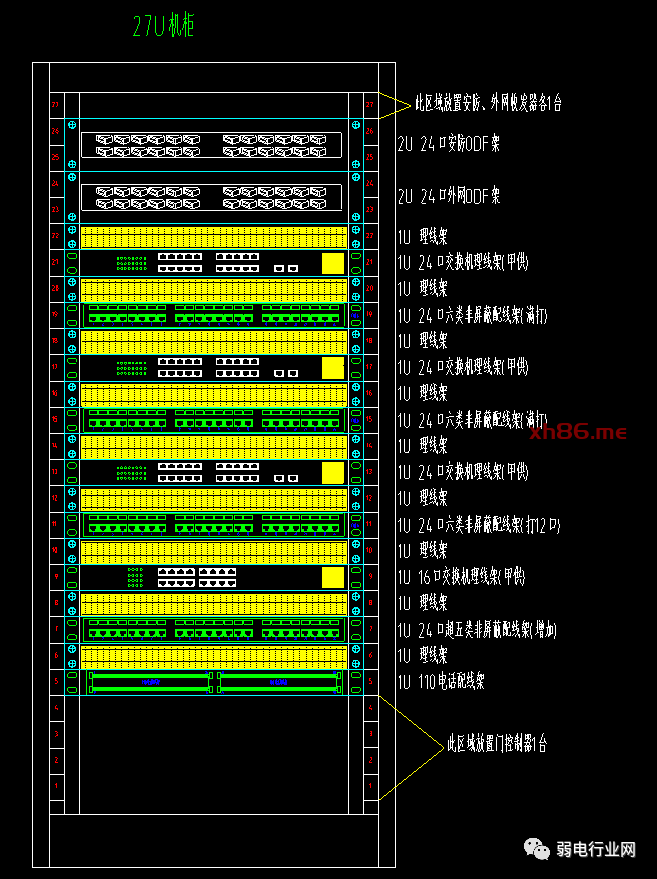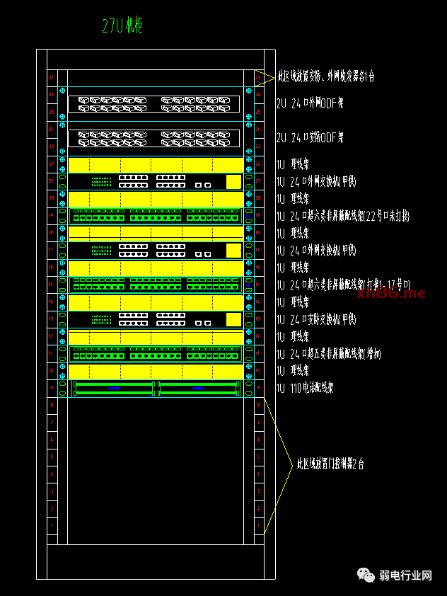 这里面我们列举下,27U、42U、47U机柜的布局CAD图详解。