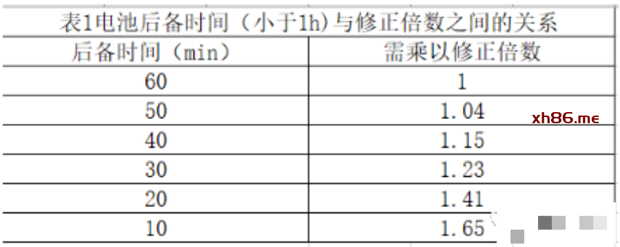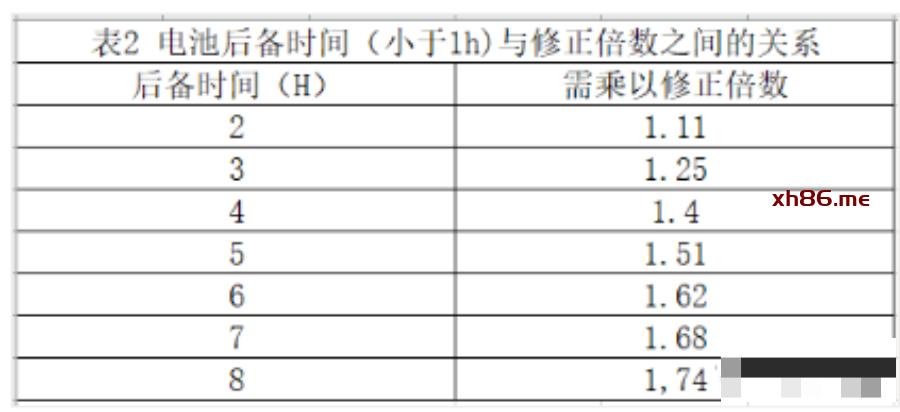 由于电池的放电功率与放电时间不是线性的,即不能只简单除以2,还需乘以修正系数。见下表1,因此205×1.23=252Ah。即可选12V、65Ah电池4组(32块/组)。