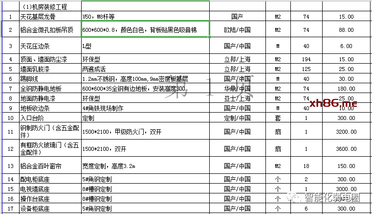 机房工程清单包括装饰装修,空调,供配电,防雷接地,动力监控,UPS等内容。