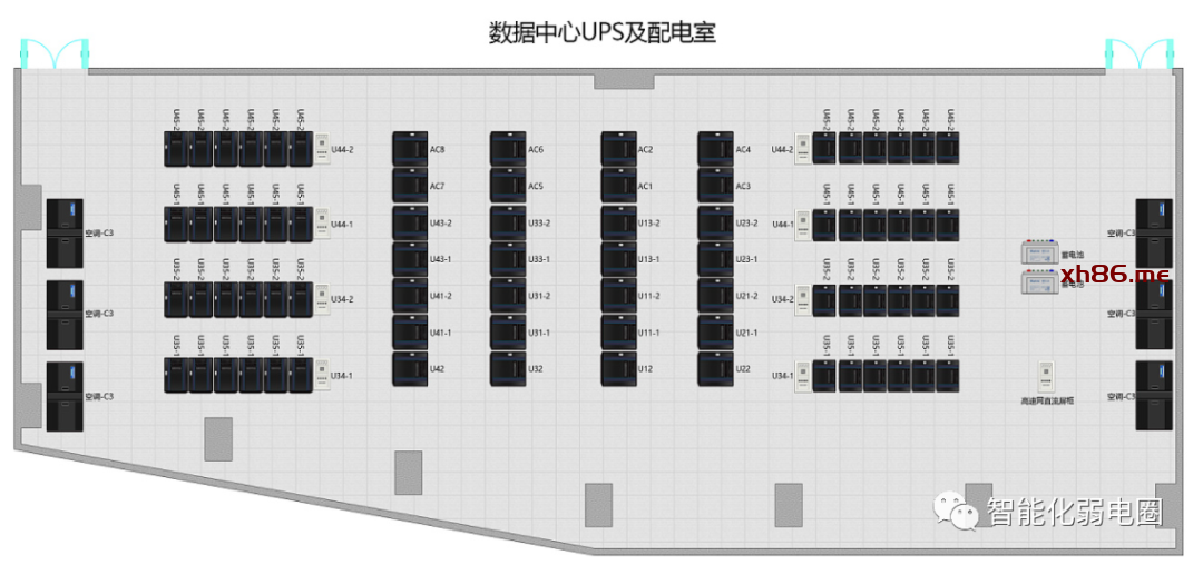 对于进深较大的通信机房,为了空调送风均匀,需要增加送风管,机房上部因通信走线桥架、空调风管、照明灯具等的布置,显得比较杂乱,没有下送风方式机房整齐美观。